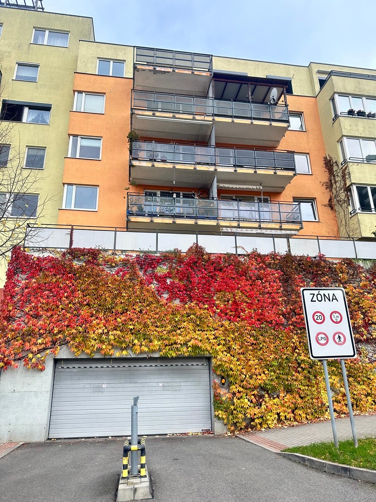 K bytu náleží garážové stání v suterénu domu a zděný sklep vhodný i pro uskladnění kol.